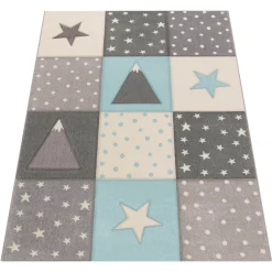 Paco Home Kinderteppich »Cosmo 340«, Rechteckig, Kurzflor, Pastell-Farben, 3D Effekt, Motiv Berge, Punkte & Sterne