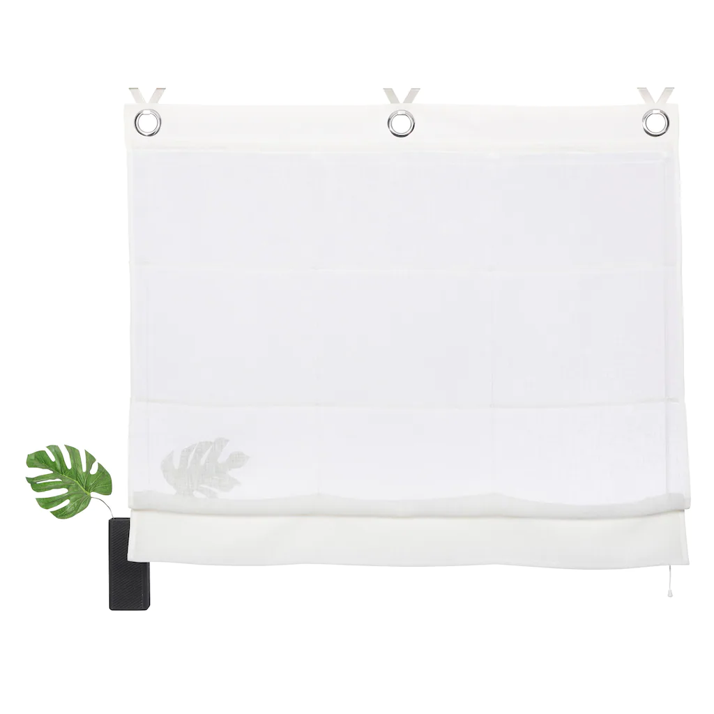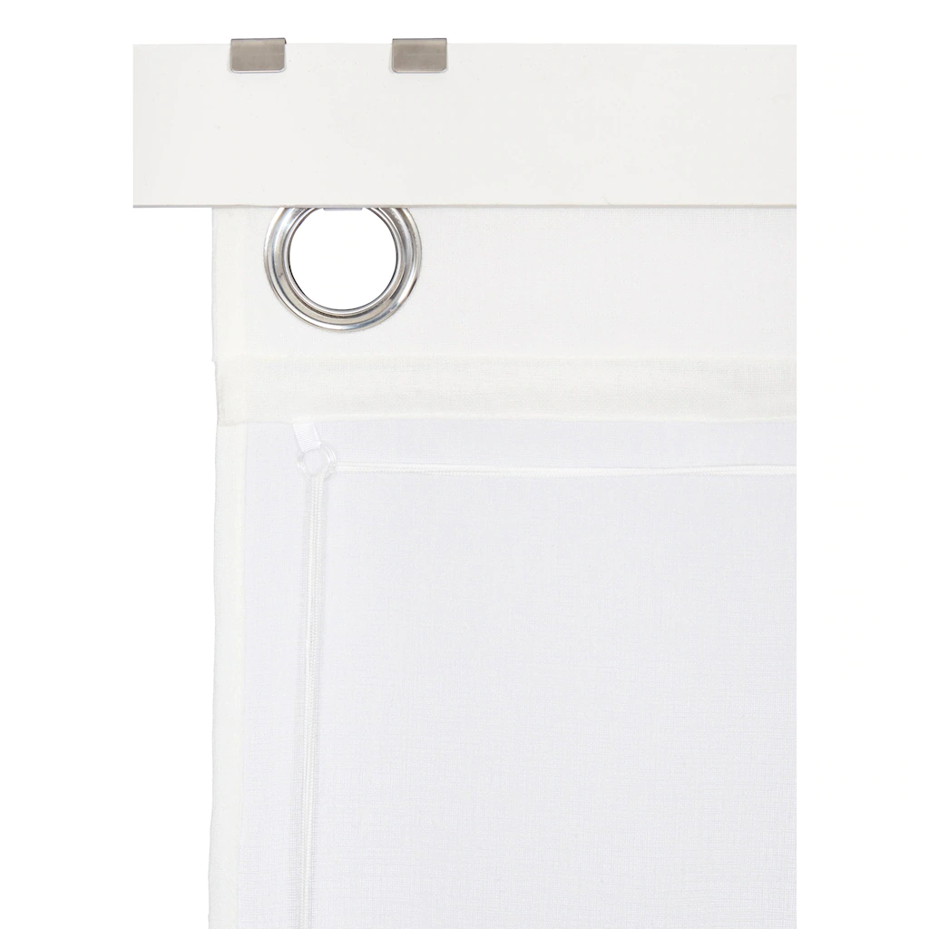 | Hinweis Aufhängung | Die mitgelieferten Halterungen werden in den Fensterrahmen eingehängt und das Rollo an den dekorativen Ösen einfach eingehakt. Geeignet für Fensterflügelstärke zwischen 13 mm und 19 mm. |