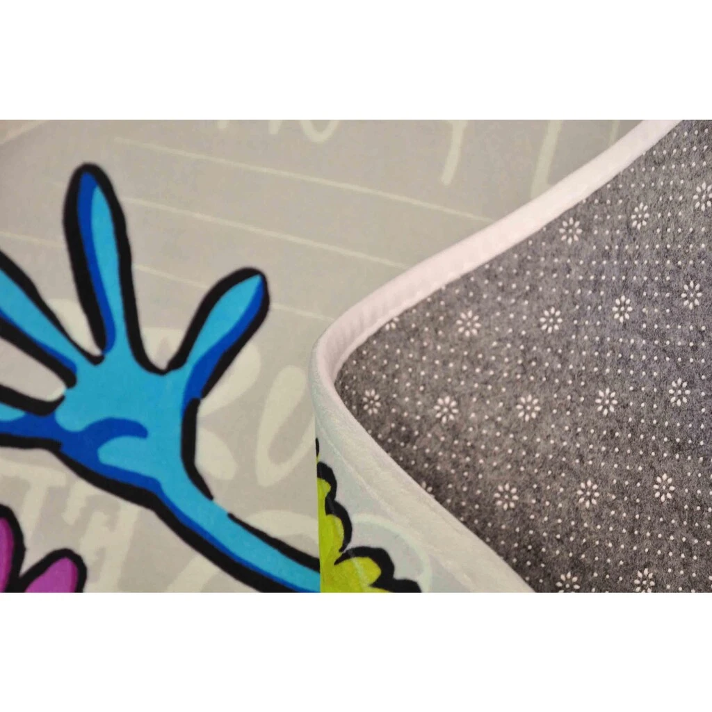 Traumteppich für kleine Füße, 100 % PES – Stoff, superfeines Rückengewebe aus Filz und PVC antislip.. Frische Farben auf einem Druckteppich in einem Stoff Druck Verfahren.