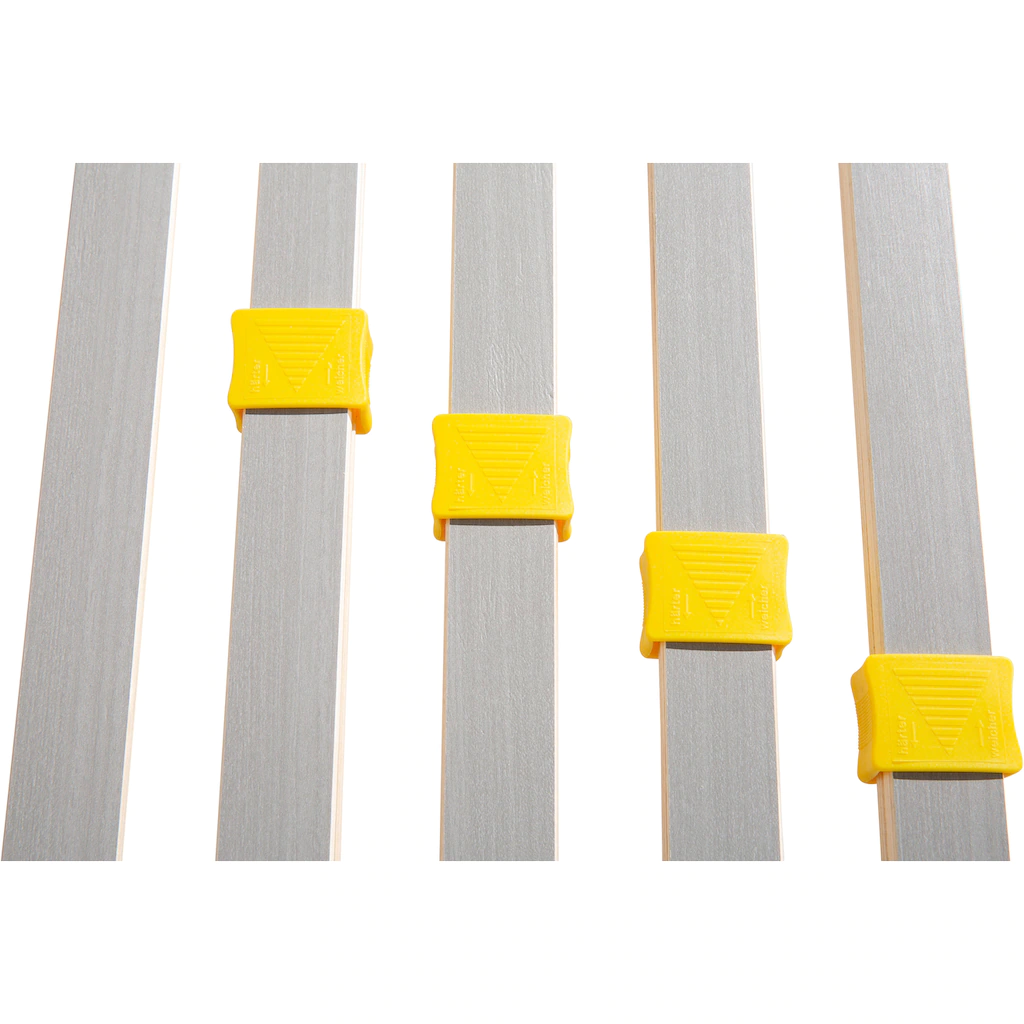 | Top-Features | Doppelleisten zur Härtegradregulierung – Dieser Lattenrost ermöglicht es, individuelle Einstellungen vorzunehmen: Seitenschläfer stellen sich eine weiche Schulterzone ein, Bauchschläfer eine stärkere Stützfunktion, damit die Wirbelsäule nicht »durchhängt«. Je mehr Doppelleisten, desto genauer und besser kann die Einstellung erfolgen.Ausgezeichnet mit dem »Blauen Engel« – Der »Blaue Engel« ist das Umweltzeichen der Bundesregierung zum Schutz von Mensch und Umwelt. Ein mit dem »Blauen Engel« ausgezeichnetes Produkt ist umweltverträglicher und gesundheitsschonender als ein vergleichbares Produkt ohne Auszeichnung. |