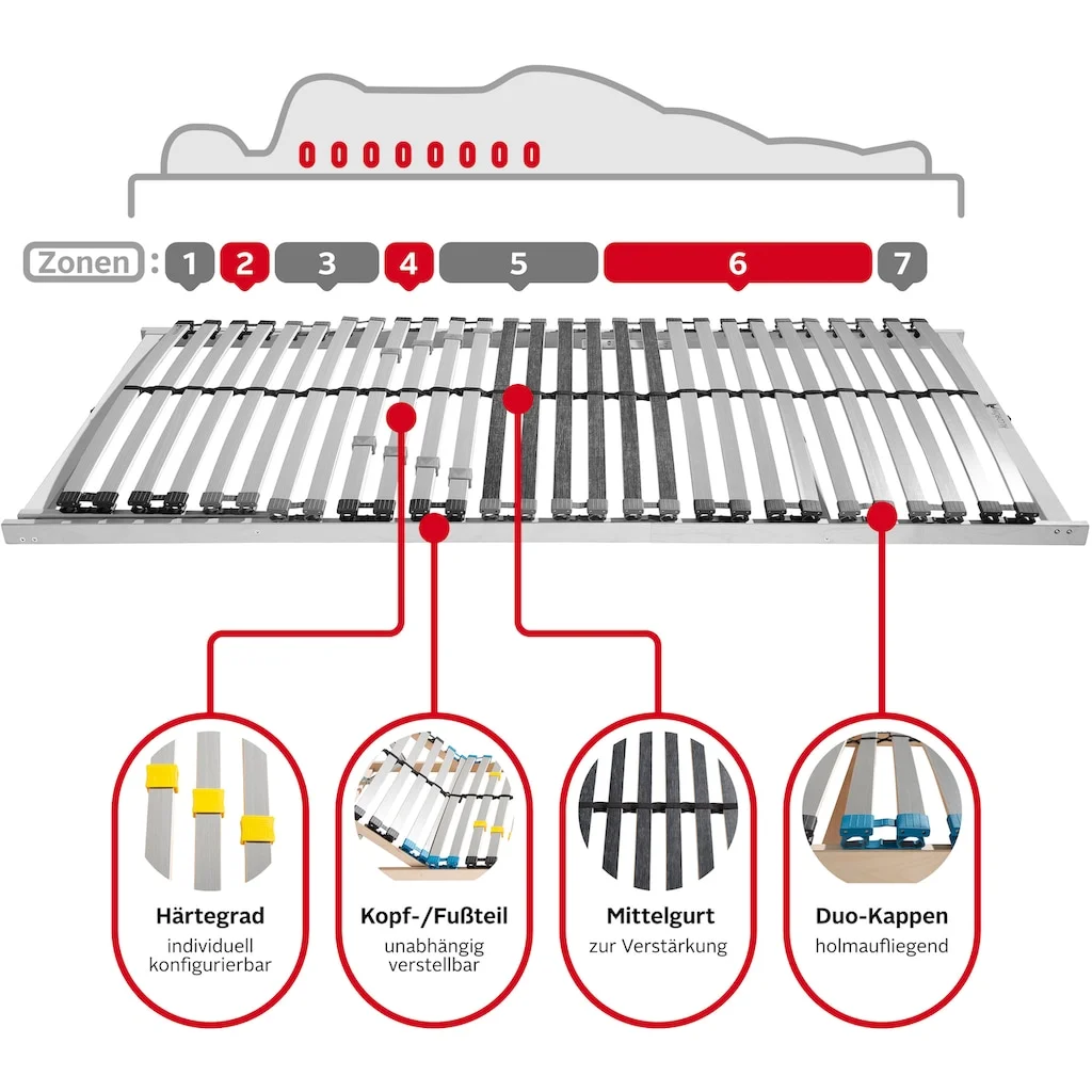 | Art des Lattenrosts | Mehrzonenrahmen |