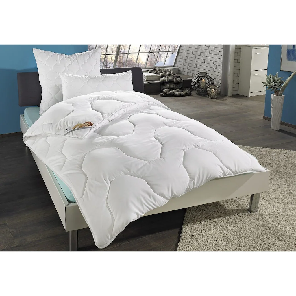 In kalten Nächten sorgt die Kunstfaserbettdecke »Wellness XXL« der Marke Beco für kuscheligen Wärmekomfort. Diese Bettdecke ist besonders dick gefüllt und sorgt für verlässliche Wärmespeicherung. Die hochbauschige Füllung ist atmungsaktiv und Feuchtigkeit wird direkt abtransportiert. Somit herrscht im Bett immer ein angenehmes und schlafförderndes Klima. Gefüllt ist die Bettdecke mit Polyester, bei dem Bezug handelt es sich um reine Baumwolle oder um Microfaser. Sie ist bei bis zu 60 °C waschbar und trocknergeeignet. So können auch Hausstauballergiker sie nutzen. Kuschelweich und wärmend gleichermaßen ist die Kunstfaserbettdecke »Wellness XXL« der Marke Beco.