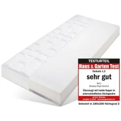 | Testsiegel | Haus & Garten Test Note: 1,2 (getestet wurde die Größe 180×200 cm H2), Im Test: Matratzen, Ausgabe 6/2018, http://www.hausgartentest.de |