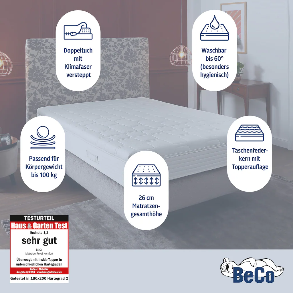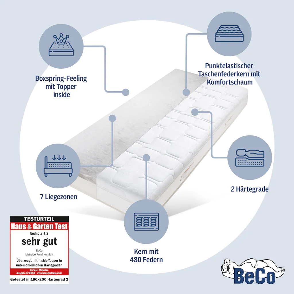 Beco Taschenfederkernmatratze »Royal Komfort KS«, 26 Cm Cm Hoch, 480 Federn, (1 St.), Komfortable Matratze In 90×200, 140×200 Cm Und Weiteren Größen