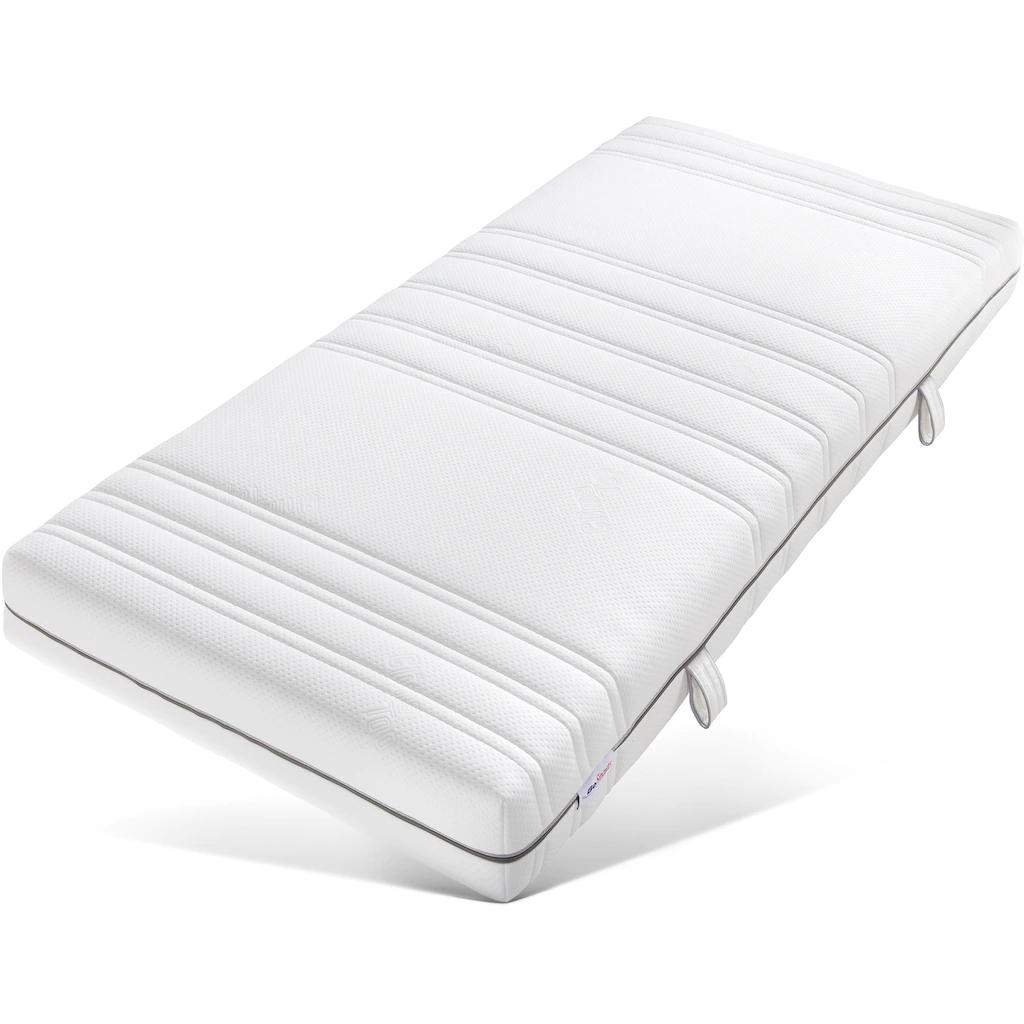 | Top-Features | Hydrux-Schaum – Hydrux ist ein sehr feinzelliger Schaumstoff (über 50% mehr Zellen als bei herkömmlichen Schaumstoffen), sehr elastisch und gleichzeitig formstabil. Dadurch bietet er hervorragende Liegeeigenschaften mit einer guten Balance aus Druckentlastung und Körperunterstützung. Dank seiner klima-optimierenden Zellstruktur kann er Feuchtigkeit schnell aufnehmen und auch wieder abgeben sowie Wärme optimal speichern.Schulter-Entlastungssystem – Die Matratze besitzt eine weiche Schulterzone, in die die Schulter problemlos einsinken kann. Damit kann eine optimale Schlafposition eingenommen werden. |