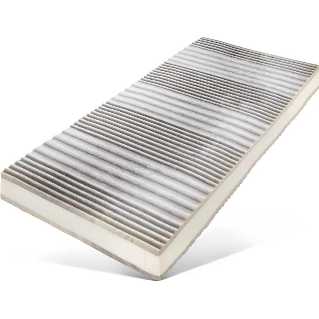 | Kernaufbau | Hydrux-Schaumpolsterung (7-Zonen-Wellenschnitt 4 cm hoch, 35 kg/m³), Taschenfederkern (12 cm hoch, ca. 480 Federn bei Federkerngröße 100×200 cm), Hydrux-Schaumpolsterung (7-Zonen-Wellenschnitt, 4 cm hoch, 35 kg/m³ |