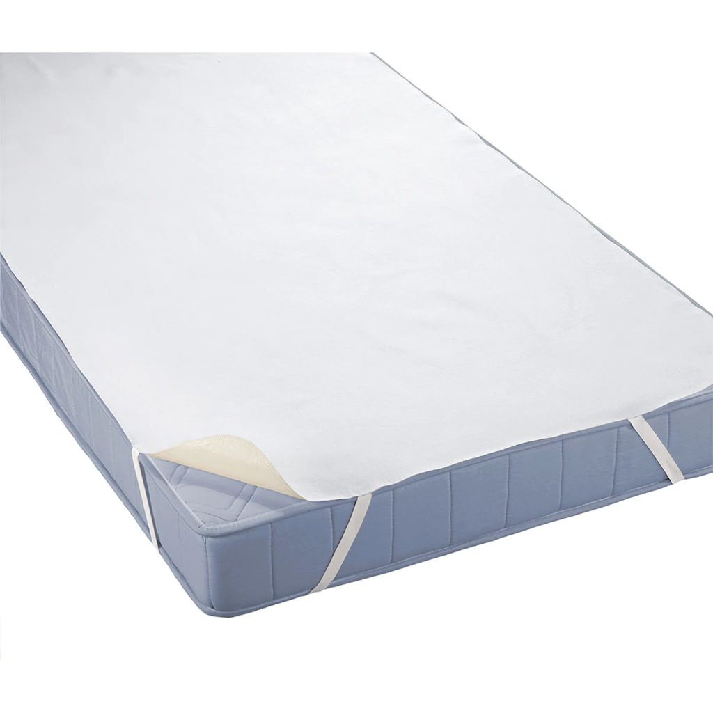 - Wasserundurchlässiger Matratzenschutz – Oberseite: 100% Baumwolle, gebleicht, einseitig gerauht, Unterseite: PE/PP Folie laminiert