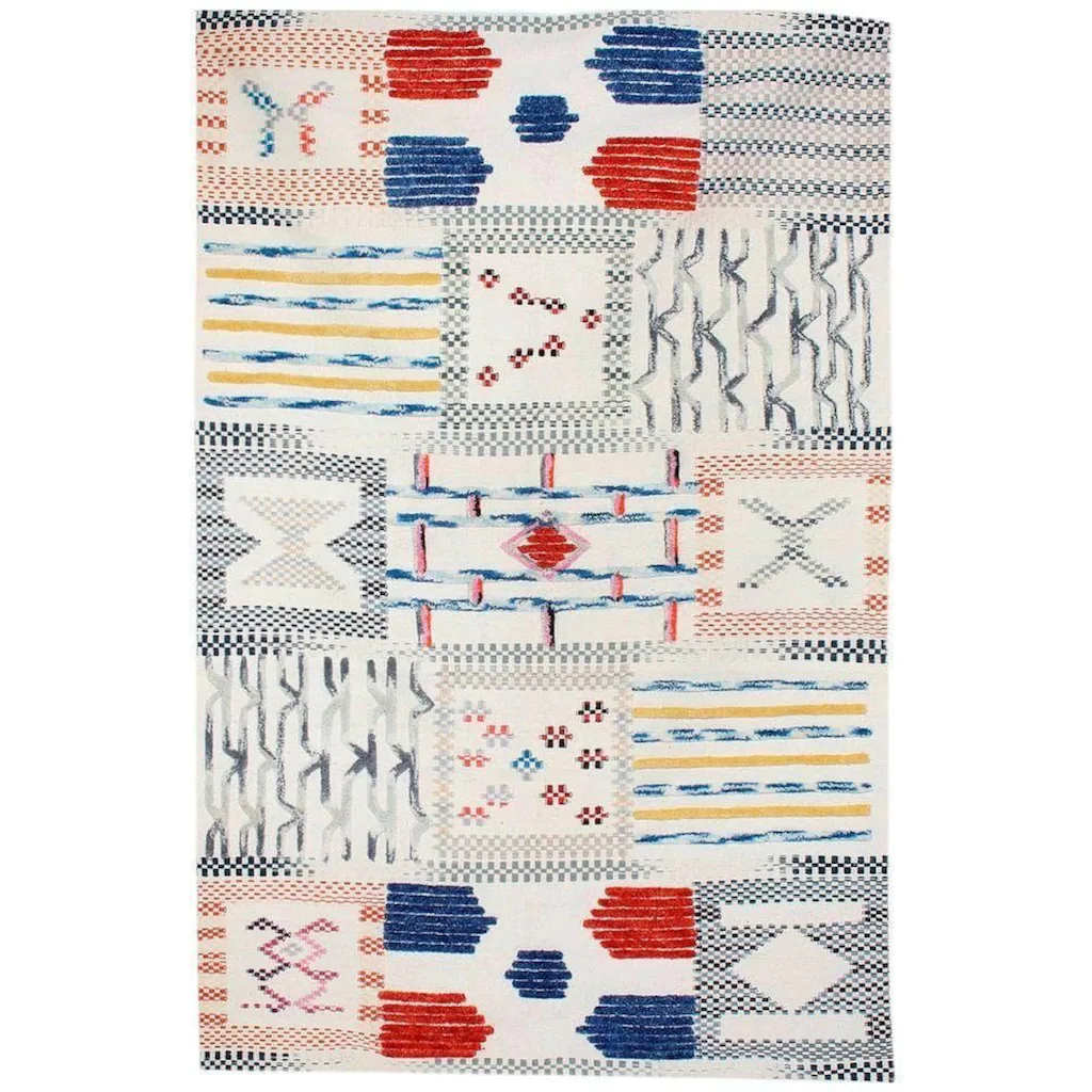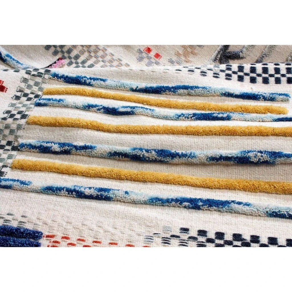 Ein wunderschöner Wollteppich mit energiereichen Farben eignet sich für jede Einrichtung.