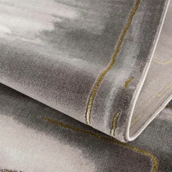 Das außergewöhnliche und zugleich moderne Design des Kurzflorteppichs gibt jedem Raum den letzten Schliff und akzentuiert den individuellen Wohn-Stil. Das faszinierende Zusammenspiel aus abstrakten und melierten Strukturen, geometrischen Formen und goldenen Farbakzenten wertet Ihrer Räumlichkeit auf. Der moderne Teppich zeichnet sich besonders durch seine vielseitigen Einsatzmöglichkeiten aus. Als Wohnaccessoire im Wohnzimmer, Teppich-Läufer im Flur, Bodenschmeichler unter dem Couchtisch oder Bettvorleger im Schlafzimmer – er ist für nahezu jeden Wohnraum geeignet.