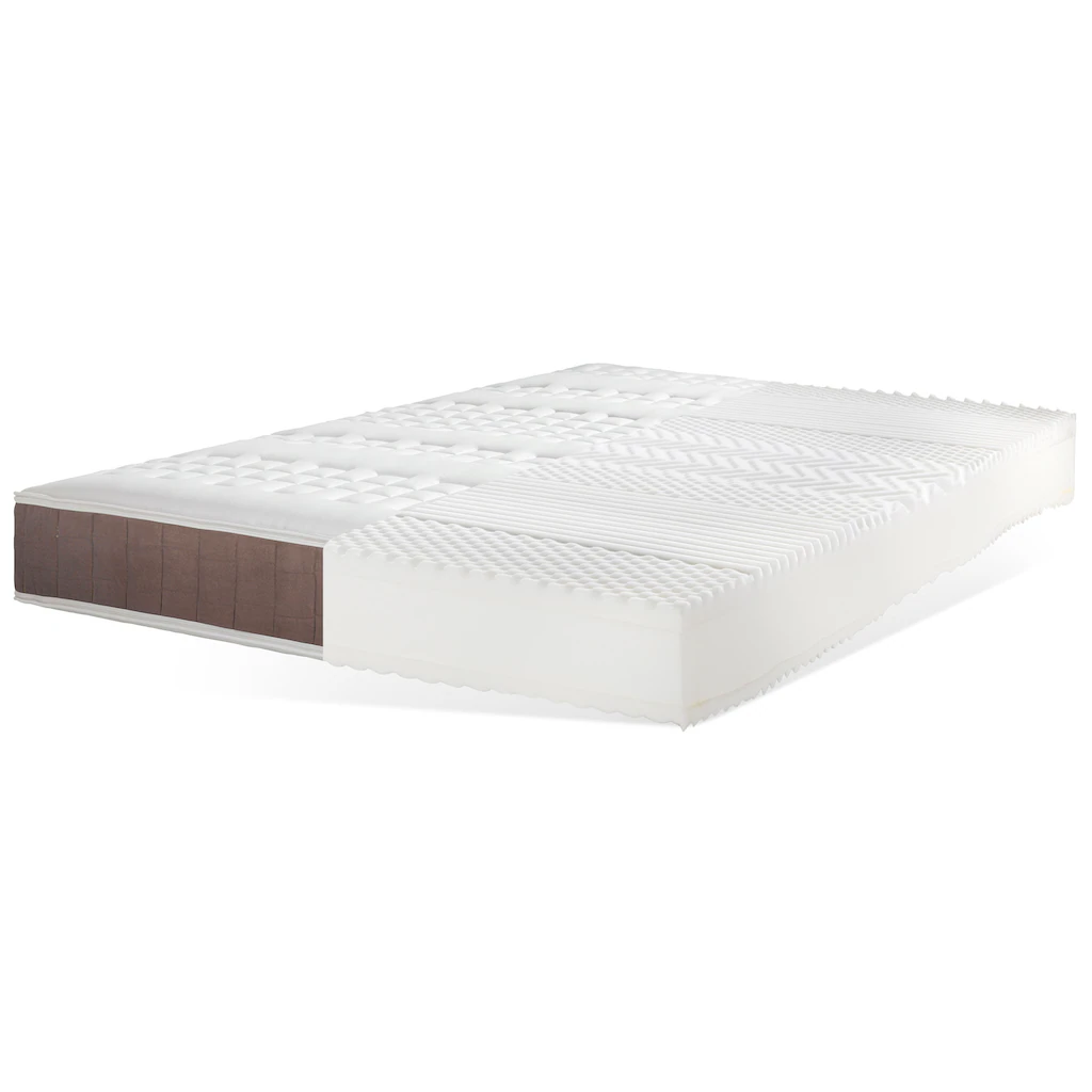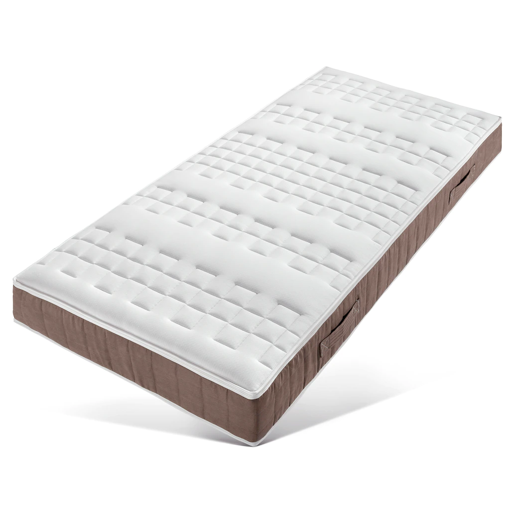 | Kernaufbau | Kaltschaum (4 cm hoch, 50 kg/m³), Taschen-Federkern (12 cm hoch, 448 Federn bei 100×200 cm), Kaltschaum (4 cm hoch, 50 kg/m³) |