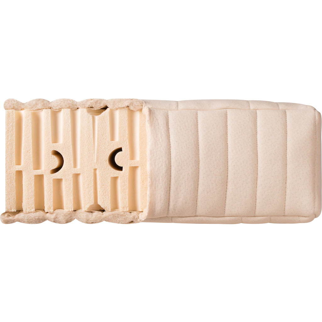 - Matratzenhöhe ca. 20 cm – Matratzenkern aus 100% punktelatischem Naturlatex – ohne synthetische Latexanteile