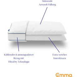 Durch die Kombination aus atmungsaktiver AeroSoft-Füllung und dem UltraDry Bezug wird außerdem ein angenehmes Schlafklima gewährleistet.