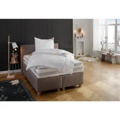 | Top-Features | Winter- und Sommerseite – Ausgestattet mit einer kühlenden Sommer- und einer wärmenden Winterseite. Diese unterschiedlichen Seiten können den Schlafkomfort und das Wohlbefinden erhöhen, denn sie tragen zu einem optimalen Temperaturausgleich bei und unterstützen damit ein angenehm trockenes Schlafklima zu jeder Jahreszeit (weniger schwitzen, weniger frieren).In Deutschland hergestellt (Rohstoffe & Endprodukt) – Für dieses Produkt wurden zu 100% in Deutschland gewonnene Rohstoffe sowie Materialien eingesetzt und in Deutschland verarbeitet. |