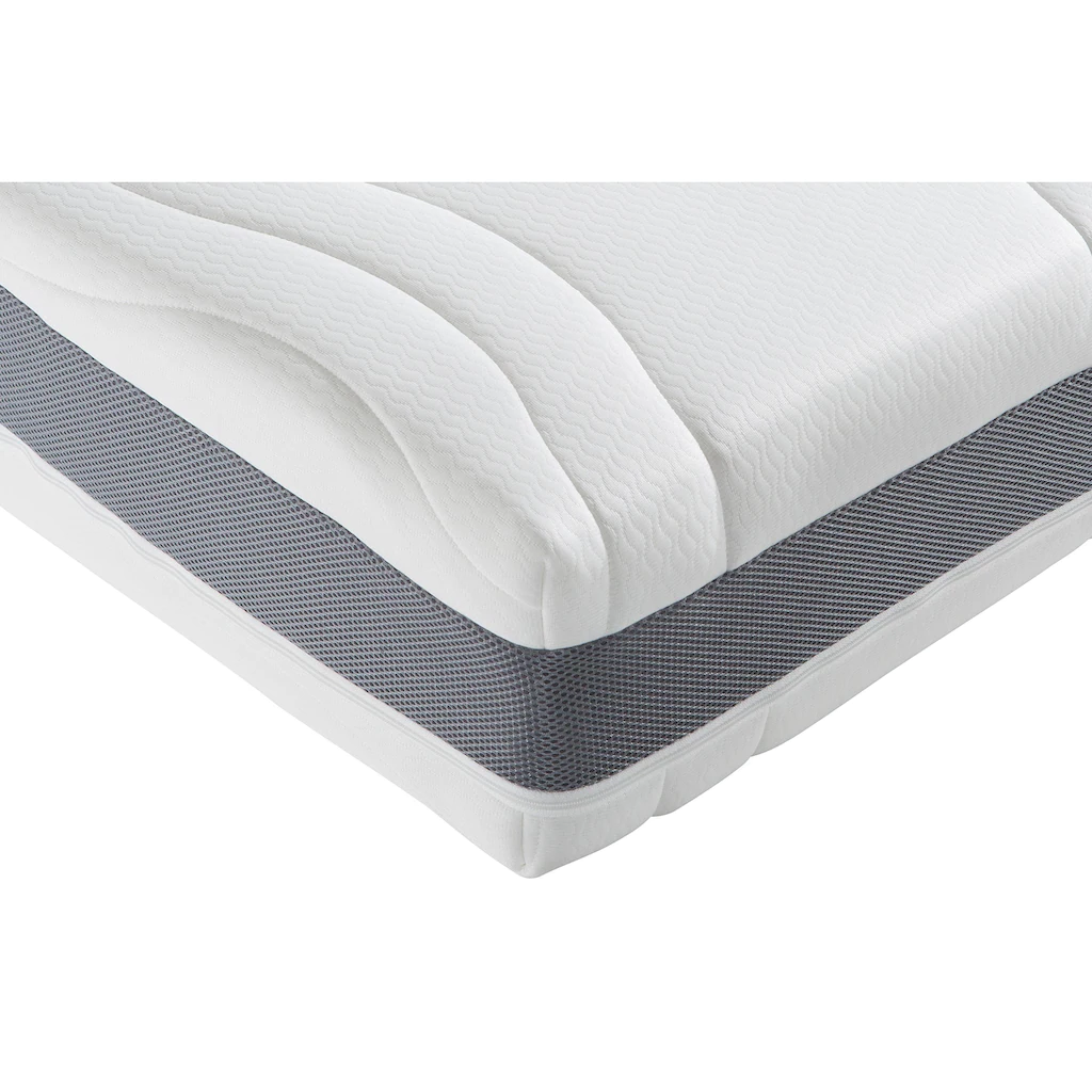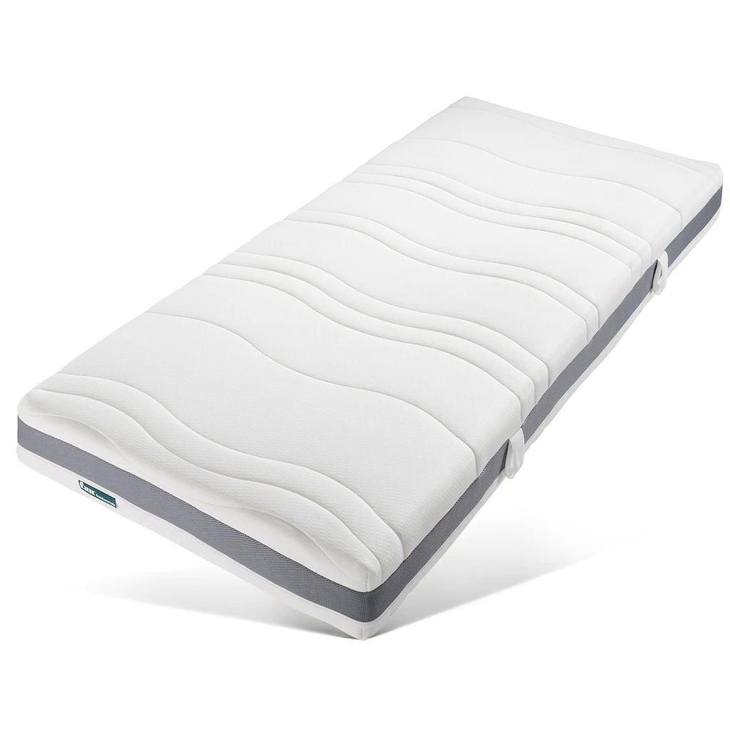 | Kernaufbau | Komfortschaum (glatt, 3 cm hoch, 30 kg/m³), Taschenfederkern (15 cm hoch), Komfortschaum (glatt, 3 cm hoch, 30 kg/m³) |