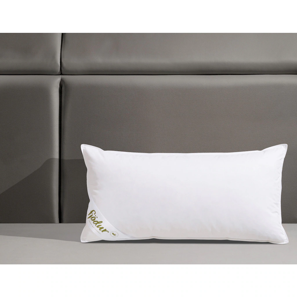 Sich abends ins Bett kuscheln, um morgens bestens erholt aufzuwachen und voller Elan in den Tag zu starten – das verstehen wir unter gutem Schlaf. Das Federkopfkissen Finn aus dem Sortiment fjödur bietet höchsten Schlafkomfort. Der weiche Baumwollbezug und die erstklassigen Federn und Daunen sorgen für eine perfekte Entlastung des Kopfes und der Nackenpartie. Zugleich ist das Kopfkissen kuschelig weich. Alle Artikel aus dem Sortiment Finn von fjödur verfügen über das Siegel »MILBEN-BARRIERE und BAUMWOLLE« vom Prüfinstitut Wessling und sind somit bestens für Hausstauballergiker geeignet. Außerdem bestätigt das Prüfsiegel »DOWNPASS« die hohe Qualität der verwendeten Federn und Daunen der höchsten Klasse I. Hochwertige und natürliche Bettwaren aus dem Hause fjödur „Made in Germany“ für Sie – einfach gut schlafen.