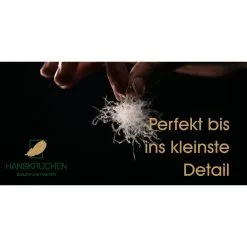 | Top-Features | Grüne Gans® – Die Grüne Gans® ist unser grüner Fußabdruck. Die Daune ist ein nachwachsender Rohstoff. Aber nicht nur Daunen, sondern auch Federn, sind ein total ökologisches, umweltfreundliches und recyclefähiges Naturprodukt. Für unsere Produkte werden nur Daunen von Gänsen und Enten aus ordnungsgerechter Haltung und von ausgesuchten Lieferanten verwendet, es werden keine vom lebenden Tier gewonnenen Daunen und Federn verwendet. Die Daunen werden in einem umweltschonenden Waschverfahren nach neuesten biotechnischen Standards veredelt und in umweltverträglicher Weise verarbeitet.Wessling: Milbenbarriere & Baumwolle – Das Prüfinstitut Wessling hat den Bezugsstoff der Bettdecken und Kopfkissen mit dem Siegel »Milben-Barriere & Baumwolle« ausgezeichnet. |