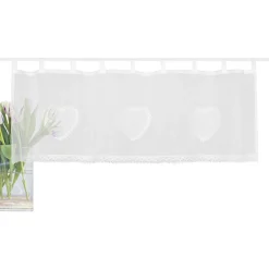 „CORAZON“ CAFEHAUS BATIST MIT HÄKELBORTE; AUFHÄNGESCHLAUFEN; GESÄUMT