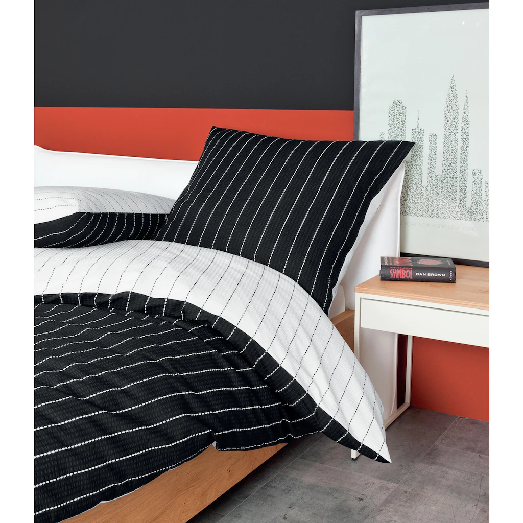 Janine Wendebettwäsche »TANGO 20020 In Gr. 135×200, 155×220 Oder 200×200 Cm«, (3 Tlg.), Gestreifte Bettwäsche Aus Baumwolle, Bettwäsche In Seersucker-Qualität