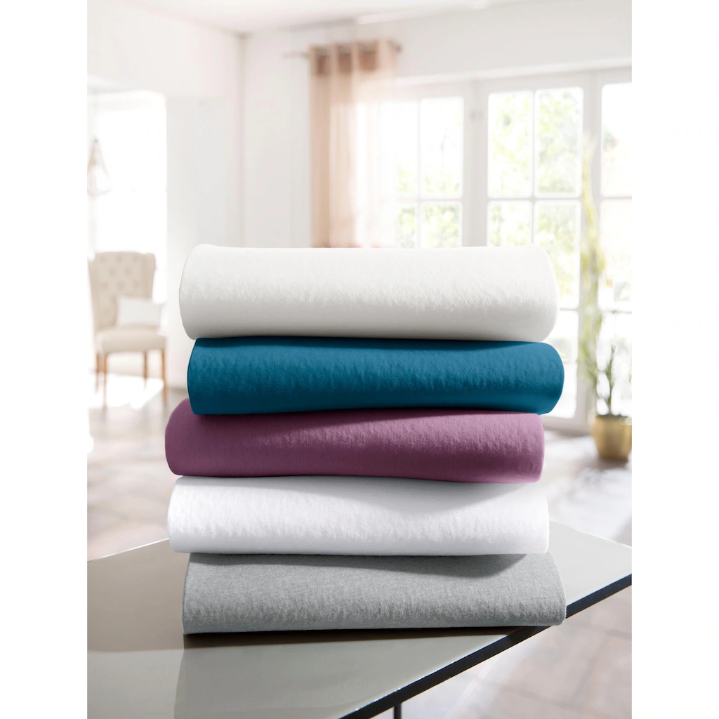 Leonique Spannbettlaken »Sofia Bettlaken, Obermaterial: 97% Baumwolle & 3% Elasthan, Für Boxspringbetten Geeignet, Aus Jersey Mit Elasthan, Für Matratzenhöhe Bis Zu 30 Cm, Premium Qualität, Mit Gummizug«, (1 St.)