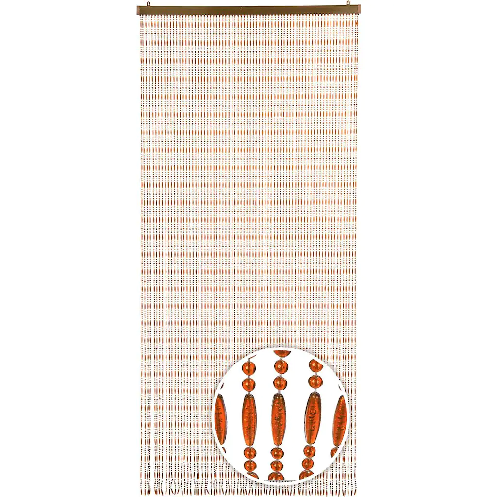 Moderner Türvorhang AMBER mit 72 Strängen. Ein altbewährter Schutz gegen Insekten mit zusätzlichem Dekoeffekt. Ein Hingucker für jede Tür und schöner Schutz, der den Großteil der Insekten abhält.Die Befestigung erfolgt über zwei in der Kopfleiste verschiebbare Ösen.