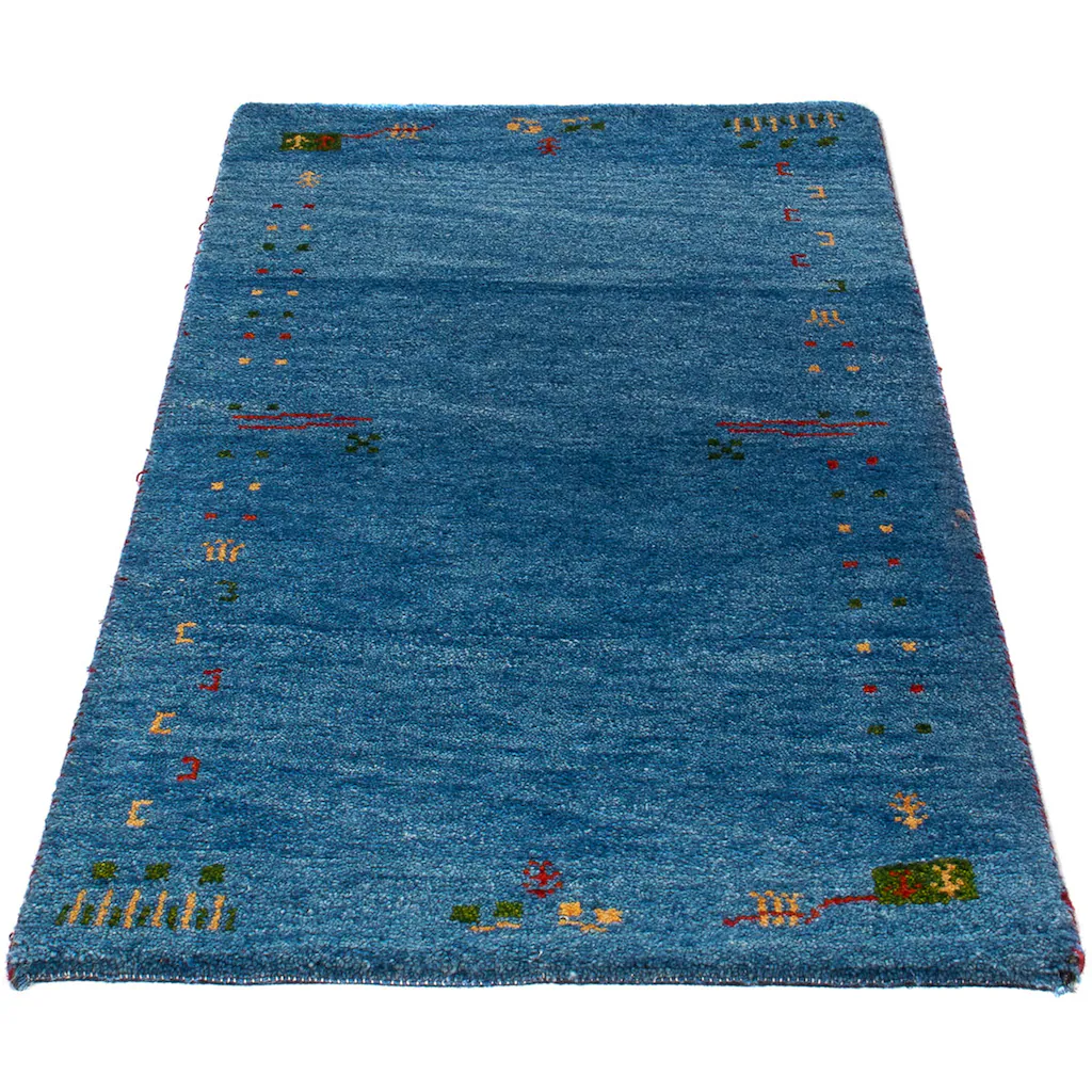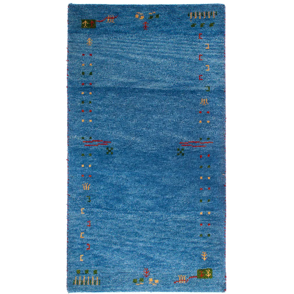 Morgenland Wollteppich »Gabbeh – Indus – 140 X 70 Cm – Blau«, Rechteckig, Wohnzimmer, Handgeknüpft, Einzelstück Mit Zertifikat