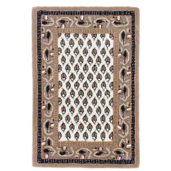Highlights Material & Qualität: 100% Schurwolle Handgetuftet Abmessung/cm (LxBxH): 90 x 60 x 1,8 cm ca. 2 Kg Unikat / Einzelstück Verarbeitung: Hochwertig und aufwändig gefertigt Design: Zeitloses Design Verwendung: Schmutzabweisend/Pflegeleicht Beschreibung Sarough gehört zu den wichtigsten Teppich-Provenienzen des Iran. Der Sarough verbindet modernes Wohnen mit traditioneller Knüpfkunst. Durch seine robuste Knüpfung ist der Sarough ein strapazierfähiger Teppich mit hoher Schall- und Wärmeisolierung. Die verwendete Wolle hat eine hohe Qualität, ist glänzend und die Teppiche sind robust und strapazierfähig. Die Knüpfungen sind sehr fein und der Flor relativ hoch. Sein zeitloses Design fügt sich problemlos in die Umgebung ein und verleiht ihr ein behagliches Wohngefühl. Heute werden in Sarough Teppiche verschiedenster Qualitäten geknüpft. Die Mustervielfalt der Teppiche gehört zu den reichhaltigsten und traditionellsten des ganzen Orients und kann somit nicht verallgemeinert werden. Bekannt sind sie für Ihre wunderschönen Medaillons, sowie auch für das bekannte durchgemusterte Mir Muster.