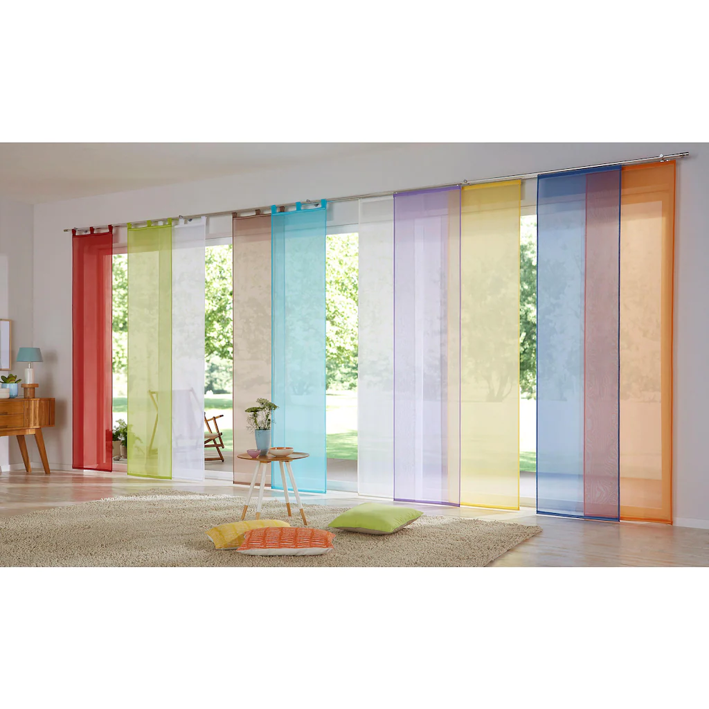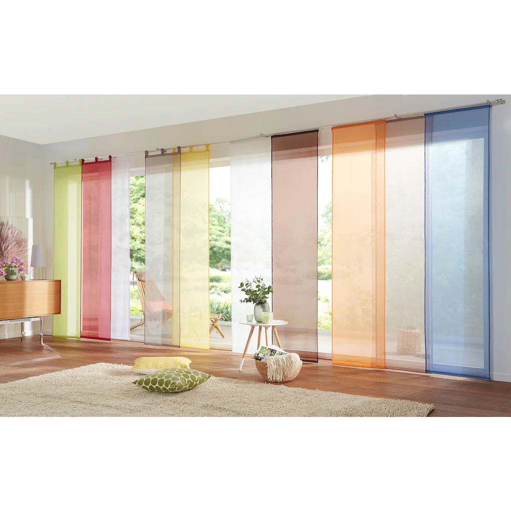 | Hinweis Dekoration | Die angegebenen Maße sind Stoffmaße.Eine Schiebegardine ist eine schmale, glatt hängende Stoffbahn, die sich sowohl als Sichtschutz als auch zur Raumteilung eignet. Durch die Schiebetechnik sind Schiebegardinen sehr flexibel einsetzbar. |