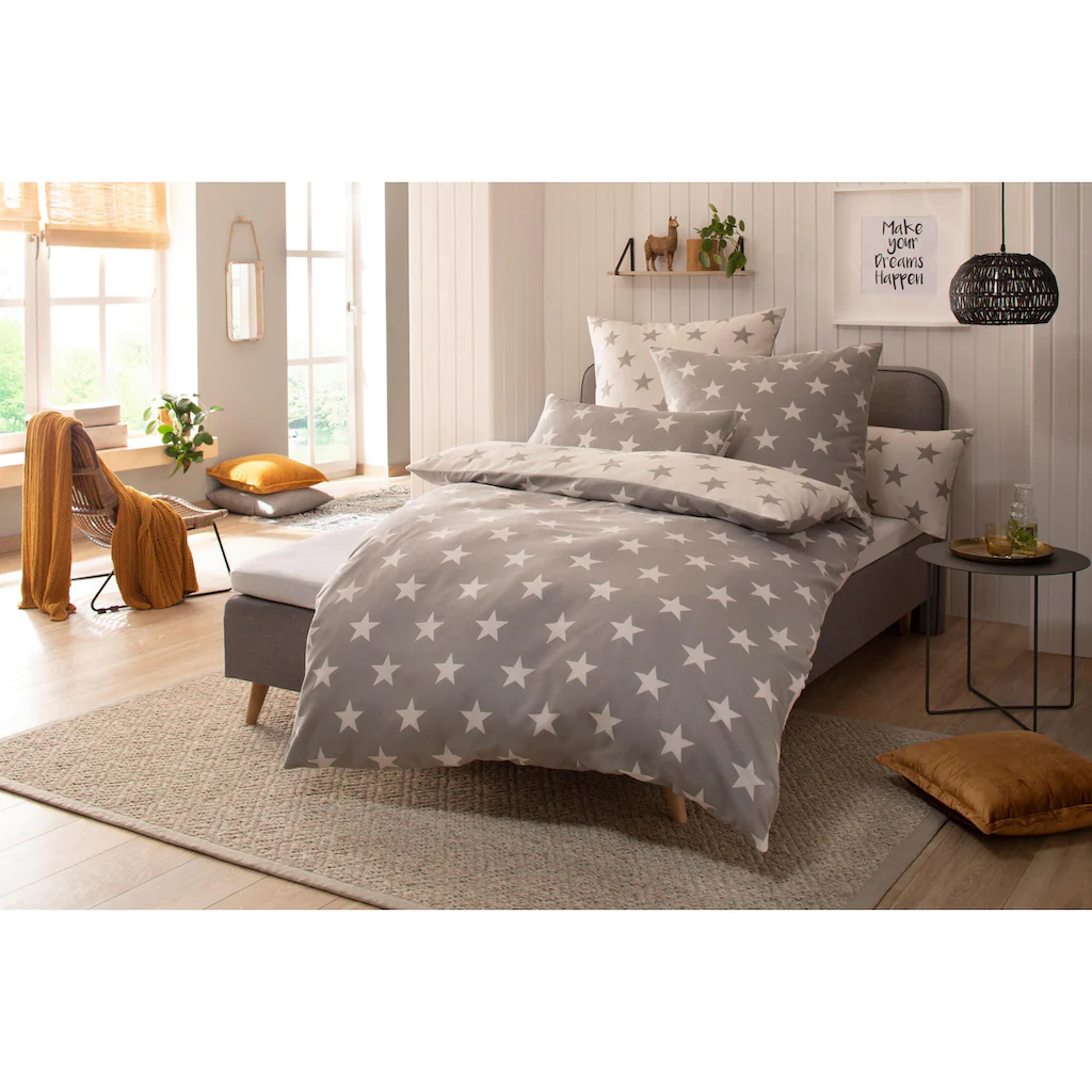 My Home Wendebettwäsche »Stella Mit Stern Motiv, Bettwäsche-Set PolyCotton Und Biber (Flannell Aus 100% Baumwolle) Qualität, Bettwäsche Set Unterstützt Die Initiative Cotton Made In Africa, Made In Green Zertifiziert«, (2 Tlg.)
