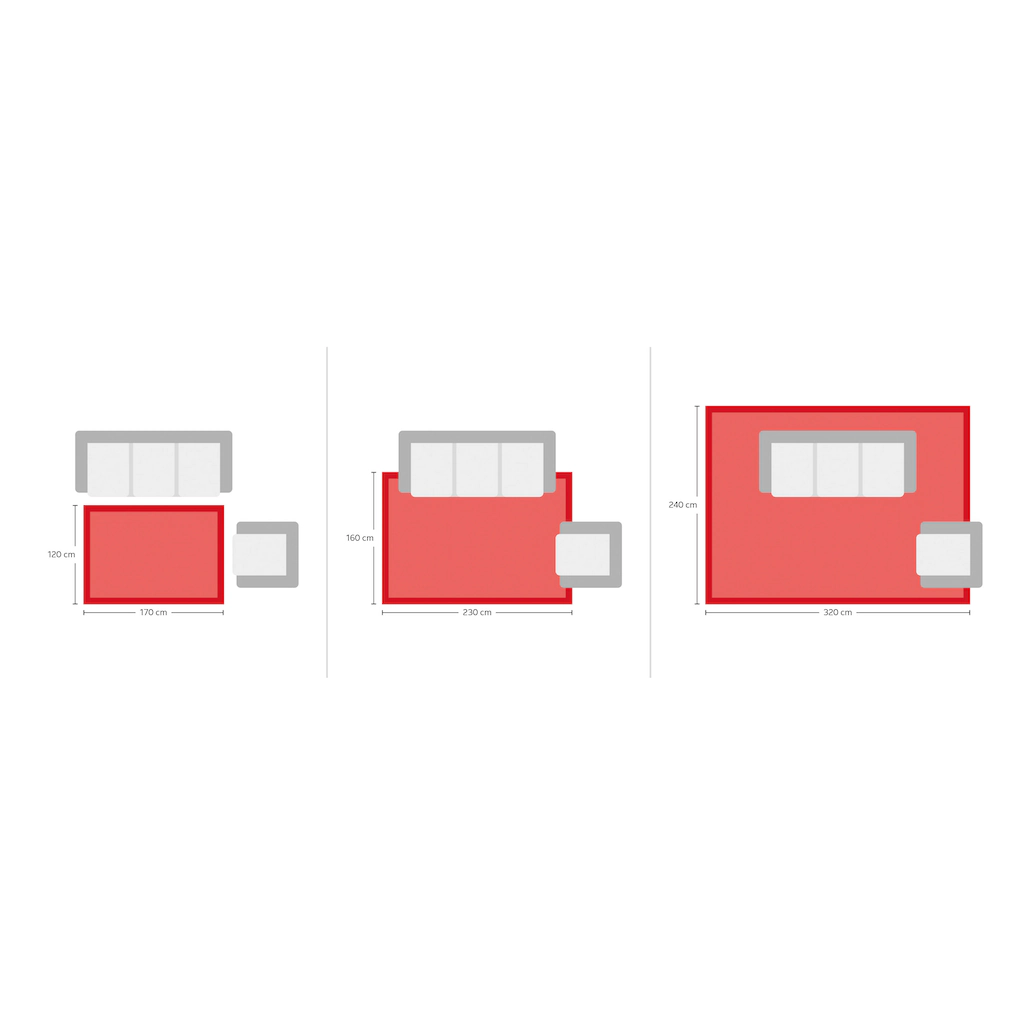 | Maße | B/L: 120 cm x 170 cm, B/L: 80 cm x 150 cm, B/L: 65 cm x 130 cm |