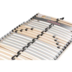 | Top-Features | Doppelleisten zur Härtegradregulierung – Dieser Lattenrost ermöglicht es, individuelle Einstellungen vorzunehmen: Seitenschläfer stellen sich eine weiche Schulterzone ein, Bauchschläfer eine stärkere Stützfunktion, damit die Wirbelsäule nicht »durchhängt«. Je mehr Doppelleisten, desto genauer und besser kann die Einstellung erfolgen.Die Kappen sind holmüberdeckend gelagert. Sie bieten einen besseren Komfort, da sie eine höhere Federung zulassen. Die Matratze ist komplett bis zum Rand hin unterfedert – liegen zwei Lattenroste nebeneinander, entsteht somit keine Besucherritze. |