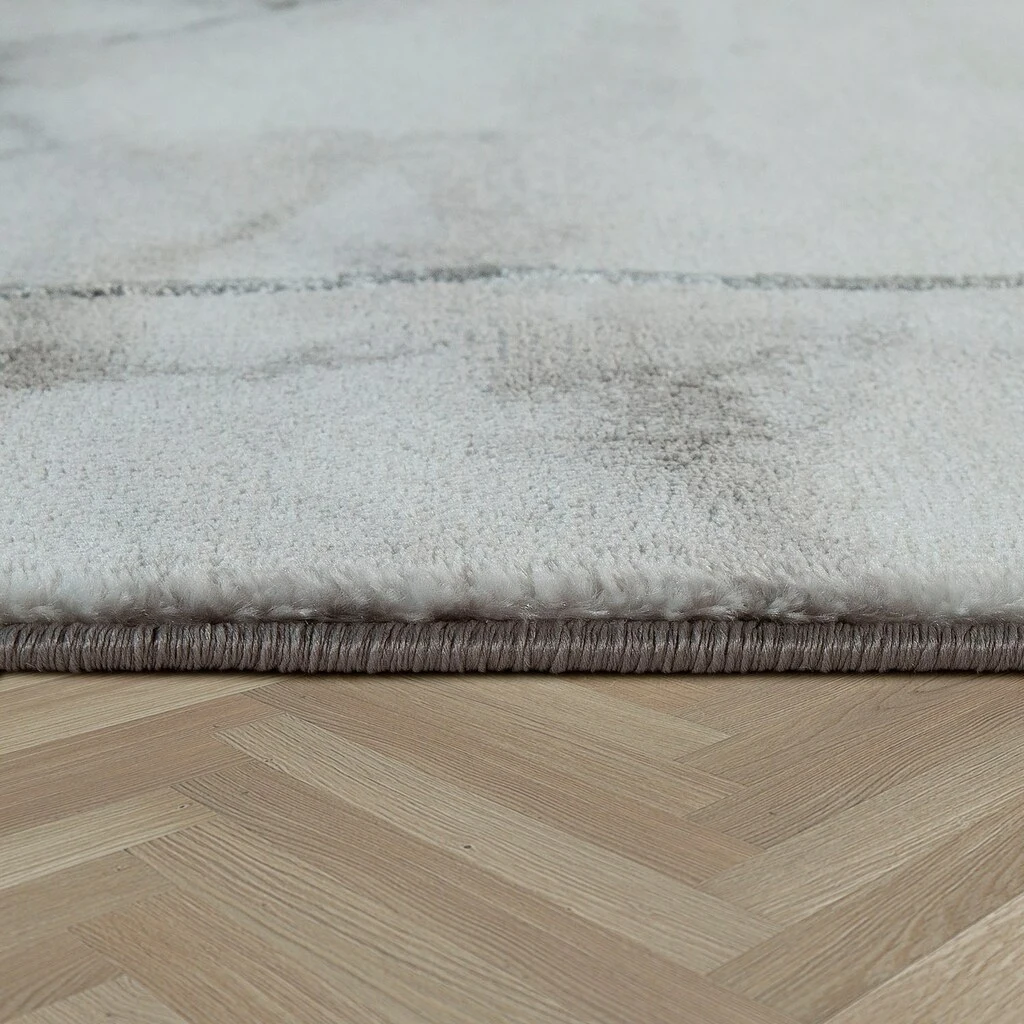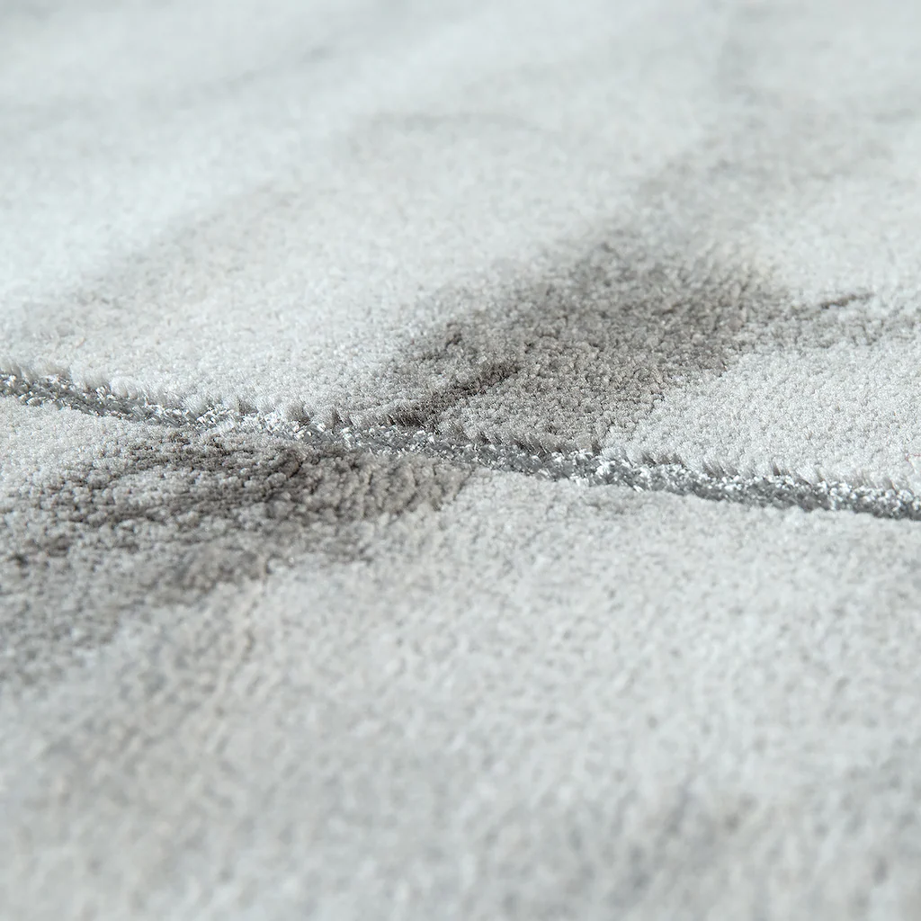 Diese Teppiche vereinen kunstvoll das eigentlich Unvereinbare und bringen zauberhaft weichen Steinboden in Ihr Zuhause! Goldene oder silberne Linien und Muster durchbrechen die außergewöhnliche Marmor-Optik und schaffen so eine harmonische Kombination von modernen und klassischen Elementen. Egal, ob geradliniges Rauten-Muster, teils mäandernde Bordüren oder unregelmäßige geometrische Linien – diese luxuriösen Kunstwerke versprühen einen erhabenen, antiken Charme und werden durch die trendigen Akzente zu zeitlosen Highlights! Einen enormen Vorteil gegenüber ihren steinernen Vorbildern haben die hochwertigen Kurzflor-Teppiche in Form ihres kuscheligen, 12 Millimeter hohen Flors, mit dem sie neben des tollen Looks auch ein komfortables Laufgefühl schaffen. Trotz der weichen Geschmeidigkeit ist diese Kollektion unerwartet robust und pflegeleicht und glänzt mit Widerstandsfähigkeit.