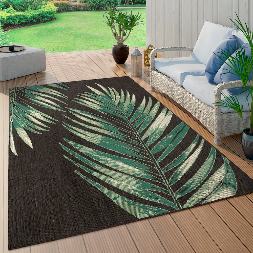 Paco Home Teppich »Ostende 554«, Rechteckig, Flachgewebe, Motiv Palmenblätter, In- Und Outdoor Geeignet, Wohnzimmer