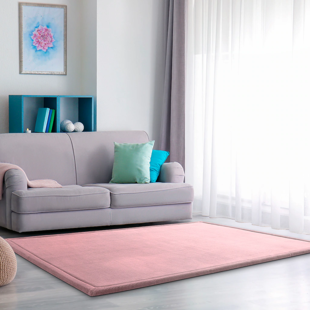 Dort, wo andere Teppiche mit grellbunten Farbkombinationen und wilden, aufdringlichen Mustern um Ihre Aufmerksamkeit buhlen, halten sich diese trendigen und traumhaft gemütlichen Kurzflor-Teppiche bewusst zurück, denn ein richtig gutes Design muss nicht aufdringlich sein. In klassischen Farbtönen wie Schwarz, Anthrazit oder Grau erhältlich, passen sie hervorragend zu jedem Mobiliar und wer gerne sanftere Töne anschlägt, für den sind die Ausführungen in Beige, Blau oder Pink genau richtig. Aber nicht nur die Optik ist hier etwas Besonderes, denn dank des herrlich soften Memory Foams bieten diese Fußschmeichler ein himmlisch weiches Laufgefühl.Mit hellen Farben und weichem Flor sind diese Kurzflore ideal für jede Inneneinrichtung und dank ihrer hochwertigen Verarbeitung können sie auch in viel genutzten Bereichen problemlos eingesetzt werden. Aus dem besonders robusten Werkstoff Polyester gefertigt, sind sie enorm widerstandsfähig und kinderleicht zu reinigen. So eignen sich diese soften Multitalente auch als Spiel- und Krabbelmatte.