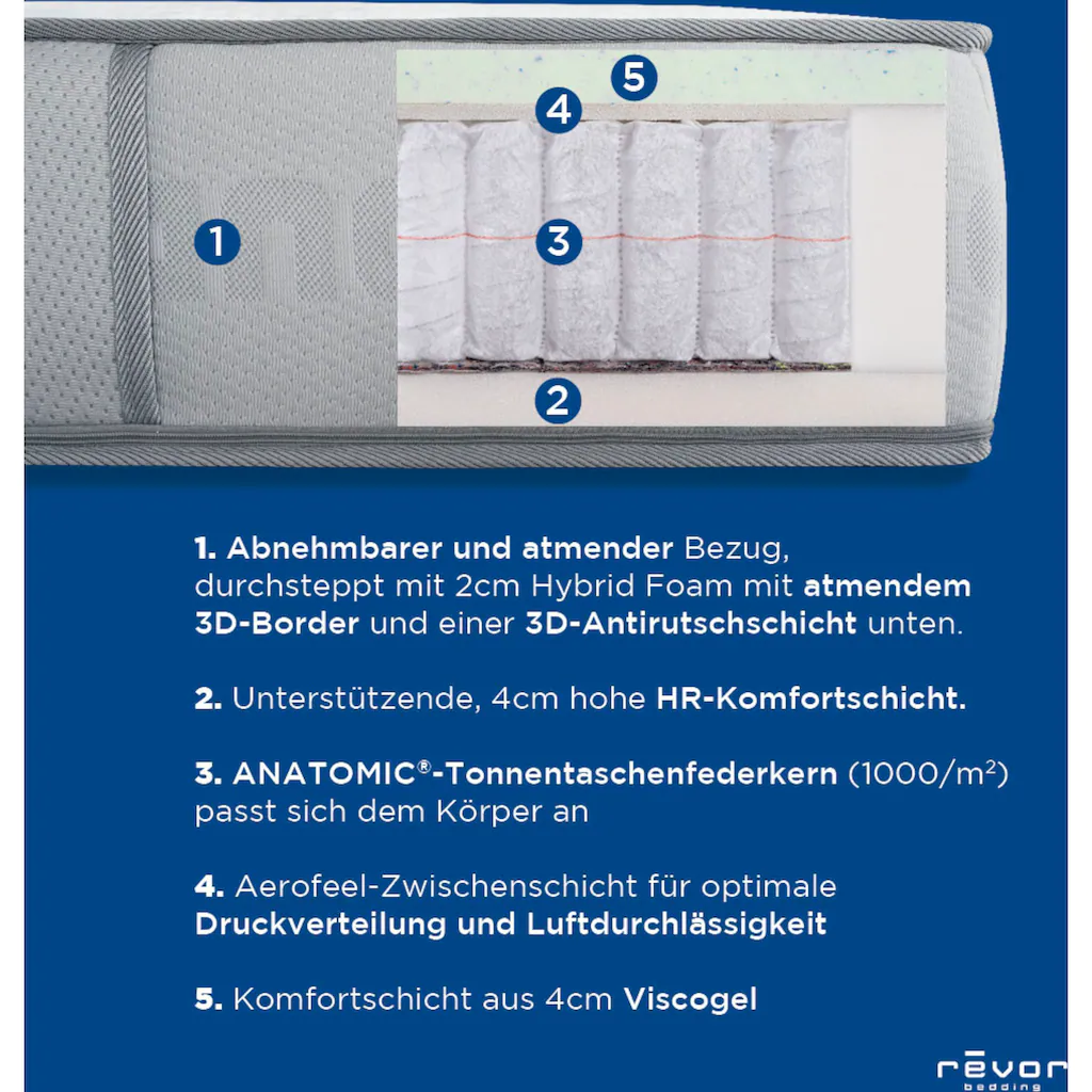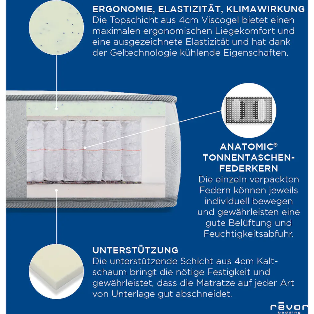 Revor Bedding Taschenfederkernmatratze »Aero Anatomic 3000 Viscogel«, 26 Cm Cm Hoch, 3000 Federn, (1 St.), Mit Einzigartigem Dynamischem ANATOMIC Federkern!