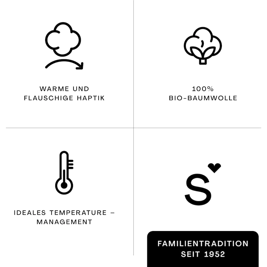 Wir stehen für langlebige, feinfädige Stoffe, die ab der ersten Berührung überzeugen. Aber nicht nur der erste Eindruck zählt. Wir möchten, dass du mit unseren Schlafgut-Bettlaken jahrelang genau das tust: Erholsam in die Traumwelt gleiten. Durch aufwendig verarbeitete, gekämmte Baumwolle veredeln wir unsere Garne zur langlebigen, robusten Qualitätslaken mit einem besonders angenehmen Hautgefühl. Diese Behandlung macht unsere Bettlaken atmungsaktiver für kühle Nächte nach heißen Tagen und eine ganzjährig angenehme Wärmeregulierung.