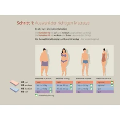 | Besondere Hinweise | Spezielle Seitenschläfer und Rücken-/Bauchschläfer-Seite. Zudem ein Wendekern, mit einer weicheren und einer festeren Seite. So findet jeder Körpertyp in jeder Schlafposition seine perfekte Liegeseite! |