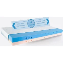 | Besondere Hinweise | Spezielle Seitenschläfer und Rücken-/Bauchschläfer-Seite. Zudem ein Wendekern, mit einer weicheren und einer festeren Seite. So findet jeder Körpertyp in jeder Schlafposition seine perfekte Liegeseite! |
