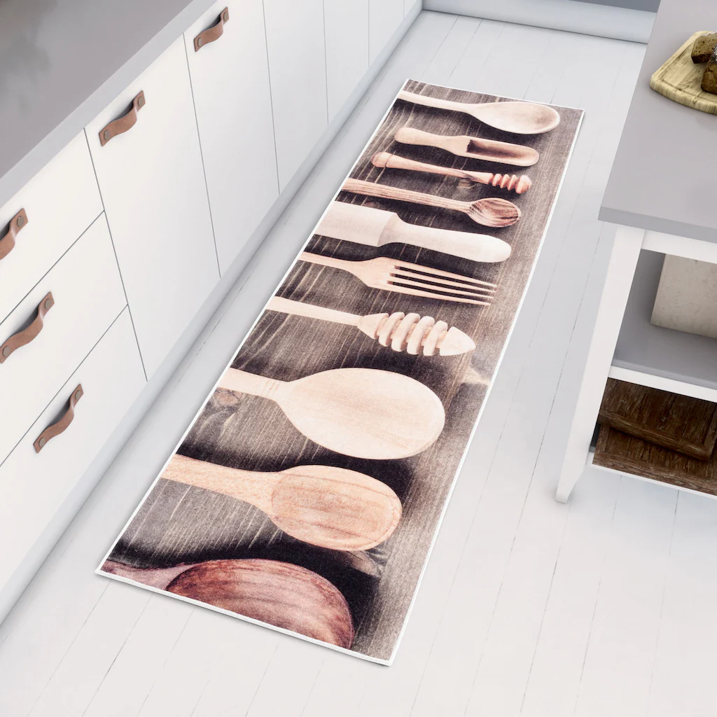 Dieser Küchenläufer präsentiert sich mit seiner geschmeidig glatten Oberfläche mit leichter Polsterung, die Ihren Füßen ein Wohlfühlgefühl vermittelt, sogar beim Kochen! Der Teppichläufer punktet mit seinen funktionalen Eigenschaften: Schmutz, Flecken und Hinterlassenschaften von Haustieren sind kein Problem mehr! Denn dieser Läufer kann ganz bequem in einer herkömmlichen Waschmaschine bei 30° Grad schonendem Waschgang gewaschen werden. Der Teppichläufer ist aus Polyester gefertigt und rückseitig mit einer rutschhemmenden Latexschicht versehen. Er hat eine angenehme Haptik und ist dank geringer Gesamthöhe in Türbereichen nutzbar. Mit der vielseitigen Einsatzmöglichkeit ist der pflegeleichte Teppich auch für Böden mit Laminat und Parkett sehr gut geeignet. Der Einsatz in der Küche mit Fußbodenheizung ist problemlos möglich.