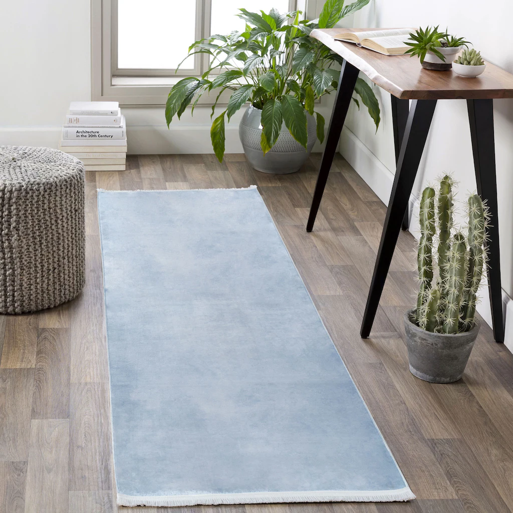 Flauschig weich wie auf den Wolken: Dieser Kurzflor Teppich präsentiert sich mit seiner super weichen Oberfläche mit leichter Polsterung, die Ihren Füßen ein endloses Wohlfühlgefühl vermittelt. Der Teppich punktet nicht nur durch sein zeitloses Design, sondern mit seinen funktionalen Eigenschaften: Schmutz, Flecken und Hinterlassenschaften von Haustieren sind kein Problem mehr! Durch die speziell angefertigte Oberfläche können Flüssigkeiten in ertser Linie ganz einfach weggewischen werden. Haben Sie hartnäckige Flecken? Das ist auch überhaupt kein Problem mehr, denn dieser Teppich kann ganz bequem in einer herkömmlichen Waschmaschine bei 30° Grad schonendem Waschgang gewaschen werden. Der Teppichläufer ist aus Polyester gefertigt und hat einen rutschhemmenden Baumwollrücken. Er hat eine angenehme Haptik und ist dank geringer Gesamthöhe in Türbereichen nutzbar. Mit der vielseitigen Einsatzmöglichkeit ist der pflegeleichte Teppich auch für Böden mit Laminat und Parkett sehr gut geeignet. Dieser unifarbene Teppich eignet sich in nahe zu allen Räumen und Interior Richtigungen. Der Einsatz in Räumen mit Fußbodenheizung ist problemlos möglich.