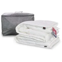 | Besondere Hinweise | Eine 4-Jahreszeiten-Bettdecke besteht aus zwei unterschiedlich dicken Bettdecken, die einzeln oder zusammengeknüpft verwendbar sind. Die leichte Ausführung kann einzeln als Sommerdecke genutzt werden, die etwas fülligere Bettdecke ist einzeln im Frühjahr oder Herbst meist ausreichend. Beide Bettdecken zusammengeknüpft halten im Winter besonders warm. |