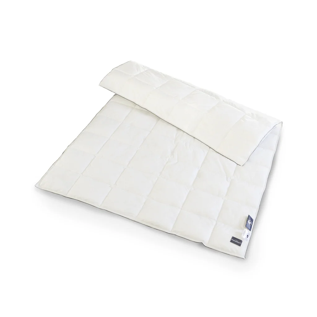 Die Bettdecke Combination ist die flexible Lösung für alle Jahreszeiten. Sie besteht aus einer Bettdecke Light (Wärmeklasse leicht) und einer Bettdecke Medium (Wärmeklasse normal), die im Bedarfsfall durch hochwertige Doppelsteckknöpfe aneinander geknöpft werden können. Durch die speziell entwickelte Duo-Hohlfaser in Spiralform ist die Decke äußerst langlebig und pflegeleicht, auch Waschgänge in der Haushaltswaschmaschine beeinträchtigen die Leistungsfähigkeit nicht.