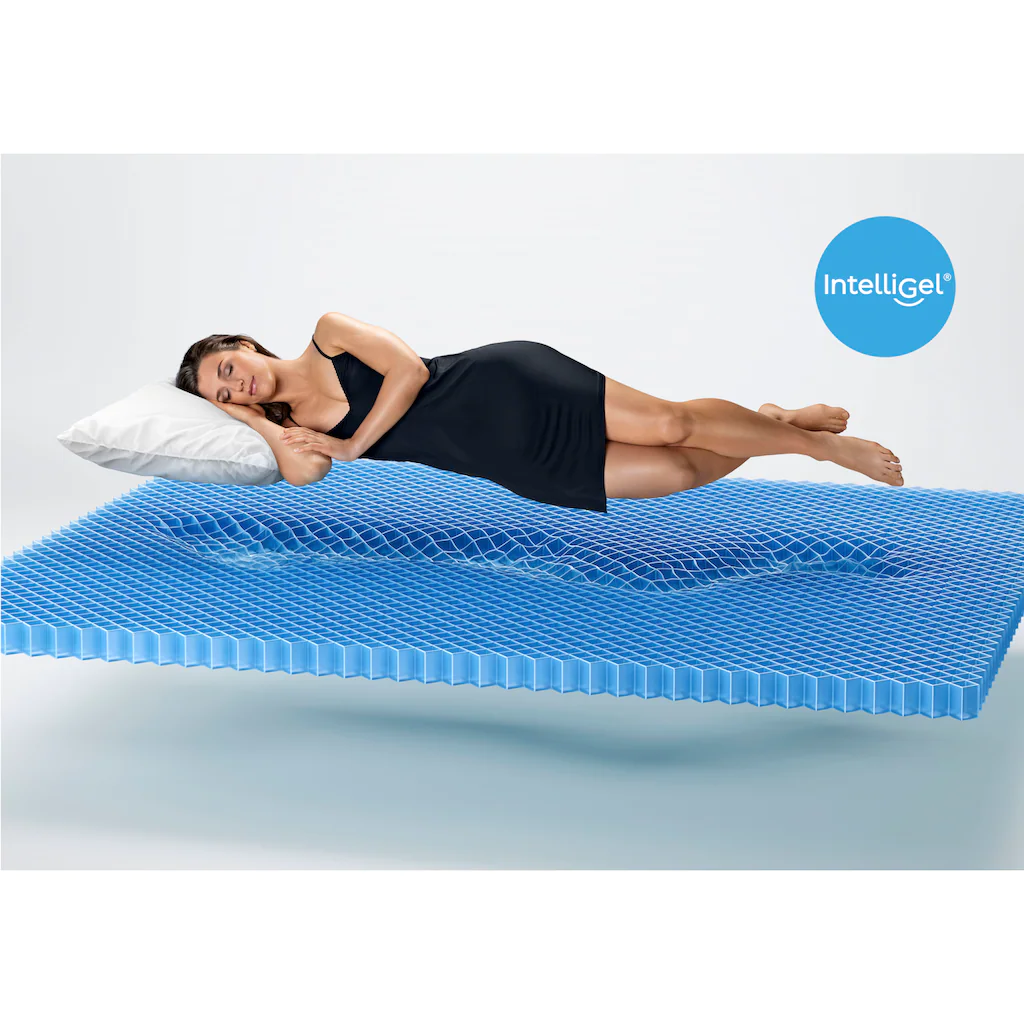 | Top-Features | IntelliGel® – EIN MATERIAL WIE KEIN ANDERES. Matratzen mit IntelliGel® sind mit den neuesten Innovationen für einen hohen Schlafkomfort ausgestattet. Eine Matratze mit IntelliGel® unterscheidet sich von einer herkömmlichen Matratze durch die einzigartige Druckentlastung, die erzeugt wird, wenn Sie sich hinlegen, ganz unabhängig von Ihrer Körpergröße und Ihrem Körpergewicht. Das Material gibt nur an den Stellen nach, an denen der Druck besonders hoch ist, und bietet dem Körper eine optimale Körperunterstützung.TENCEL™ – TENCEL™ ist eine Lyocell-Faser aus dem Hause Lenzing. Sie wird in einem besonders umweltfreundlichen Verfahren aus dem Rohstoff Holz gewonnen. Materialien aus TENCEL™ sind saugfähiger als Baumwolle,weicher als Seide und kühler als Leinen. |