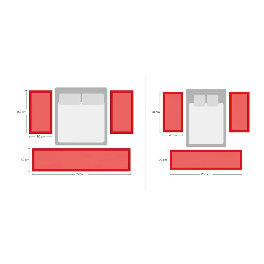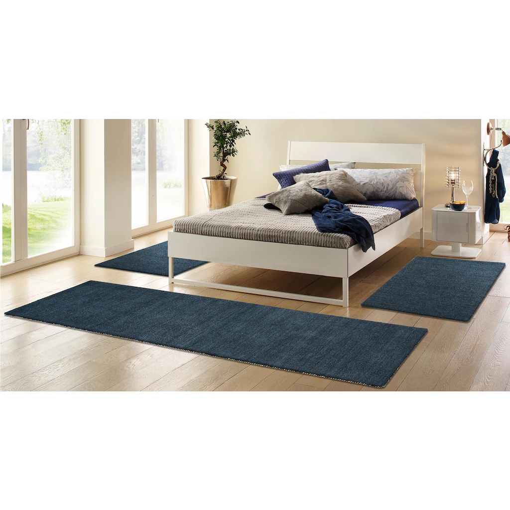 Die handgefertigten Teppiche werden aus einem speziellen Garn aus reiner Schurwolle erzeugt. Mit einer besonderen Spinnung und einem aufwendigen Färbeprozess wird eine typische Gabbeh Melierung erzeugt. Jeder Florfaden erhellt eine Vielzahl an Farbnuancen. Leichte Farbabweichungen sind ein typisches Merkmal dieser Qualität und ein Zeichen der Echtheit. Diese in aufwendiger Handarbeit hergestellten Nomaden-Teppiche sind bekannt für ihre dicke und robuste Schurwolle. Eine traditionelle Wäsche verleiht den Teppichen einen besonderen Glanz. Die charakteristischen, fröhlichen und intensiven Farben der Gabbeh Teppiche kommen so besonders gut zu Geltung.Die Bettumrandungen haben die Größen: 2×70/140+1×70/320