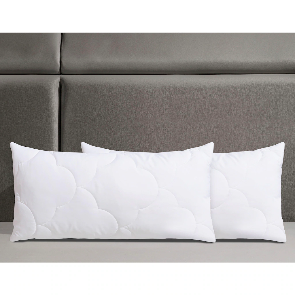 Kochfestes Kopfkissen-Set der Marke Traumecht mit anschmiegsamen Bezug wahlweise aus Microfaserbatist.In Kombination mit den bauschkräftigen, spiral gekräuselten 3D-Faserbällchen, immer wieder aufschüttelbar, erhalten Sie ein besonders atmungsaktives und den Kopf- und Nackenbereich bestens stützendes Kopfkissen. Durch die beidseitige Versteppung des Bezuges ist dieses Kopfkissen länger haltbar als ungesteppte Kopfkissen. Kochfest bis 95 °C und daher ideal für Hausstauballergiker und hohe Hygieneansprüche.