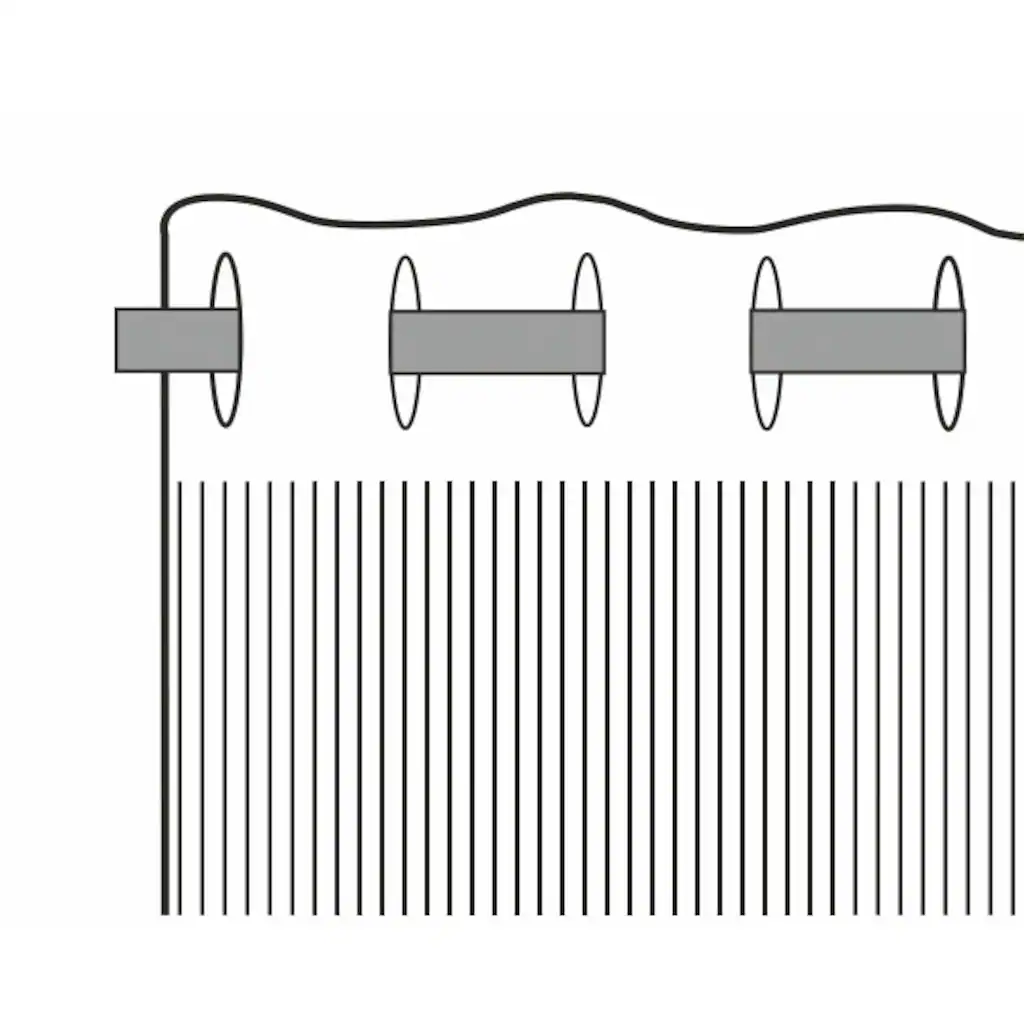 | Hinweis Dekoration | Die angegebenen Maße sind die fertig dekorierten Maße.Fadenvorhänge eignen sich durch die senkrechten Fäden auch als Raumteiler oder an Türen (z. B. als Insektenschutz). Die Optik lässt sich leicht verändern, indem man die Fadenvorhänge gerafft dekoriert. |