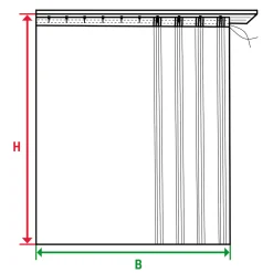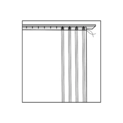| Hinweis Aufhängung | Aufhängung mittels Gardinenröllchen (nicht im Lieferumfang enthalten) in der Gardinenschiene. |